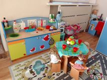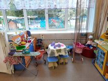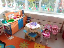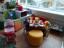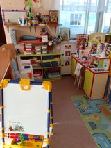 Каждая группа имеет групповое помещение, отдельную спальню, приёмную, моечную и туалетную комнаты. При создании развивающей предметно-пространственной среды педагоги проявляют творческий подход, что придаёт каждой группе свою индивидуальность. Все группы оснащены необходимыми средствами обучения и воспитания. Группы оборудованы необходимой мебелью, мягким инвентарём. Во всех группах имеется игровой материал для познавательного развития детей раннего и дошкольного возраста, музыкального развития, для продуктивной и творческой деятельности, для сюжетно-ролевых игр; игрушки и оборудование для игр во время прогулок; оборудование для физического, речевого, интеллектуального развития; игры, способствующие развитию у детей психических процессов. В каждой группе имеются методическая и художественная литература, дидактические игры и пособия, наглядный и иллюстративный материал, аудиотеки. Во всех группах имеются магнитофоны и телевизоры. Все дошкольные группы оснащены ноутбуками. В группах созданы условия для всех видов детской деятельности: игровой, учебной, трудовой, самостоятельной, а также совместной деятельности взрослого и ребенка. При создании развивающей предметно-пространственной среды в групповых комнатах педагоги учитывают образовательную программу, реализуемую в группе, возрастные и индивидуальные потребности детей данного возраста с нормой развития и ОВЗ, полоролевую специфику.