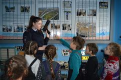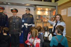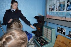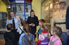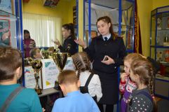 На входе в музей ребят встретили манекены сотрудников ГИБДД в старинной форме. Самый первый инспектор – в одежде 1936 года. В центре музея расположен макет здания областной Госавтоинспекции – со всеми корпусами, хозяйственными постройками и автодромом. Ребята познакомились с профессией «Инспектор ГИБДД», услышали историю рождения музея, увидели машины всех калибров и назначений, водительские удостоверения 1936 года выпуска, всевозможные жезлы, радары старого образца, полицейский мотоцикл и ярко-желтую патрульную машину марки «Волга».