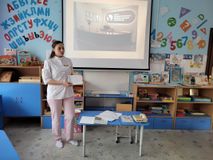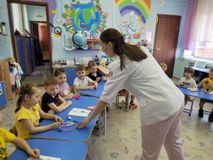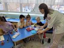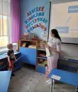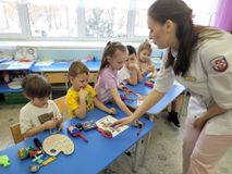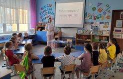 В ходе беседы Марина Владимировна рассказала детям о том, что входит в обязанности медицинского регистратора: направляет пациентов к нужным специалистам, он не только рассказывает им о деятельности учреждения и записать на приём, но и обеспечивает комфортное пребывание в медицинском учреждение. Например, приглашает пациента присесть на диван и подождать доктора.