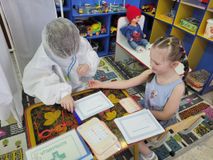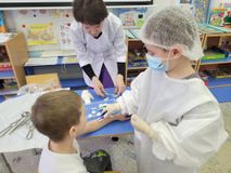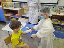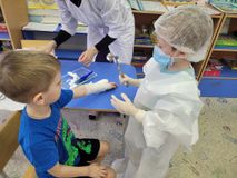 17 марта 2023 года в рамках реализации ранней профориентации дошкольников для воспитанников старшей группы № 4, было организованно мероприятие по ознакомлению с профессией «Операционная медицинская сестра». Представитель родительской общественности - Адищева Татьяна Александровна рассказала детям о своей профессии. Рассказала детям о том, что операционная медицинская сестра - это первый помощник хирурга при проведении операции., о том, чем она занимается во время работы в операционной. Показала детям инструменты, которые используют во время операции. Ребятам объяснила и показала как обрабатываются руки хирурга и медсестры перед операцией и как правильно одеть одноразовый костюм перед операцией. Далее ребята поиграли в сюжетно-ролевую игру "Больница", разгадывали загадки, пополнили словарный запас медицинской терминологией посредством ознакомления детей с предметами, необходимыми в работе операционной медицинской сестры. Татьяна Александровна подарила детям одноразовые маски, шапочки и пинцеты. Дети получили много положительных эмоций о данной профессии.