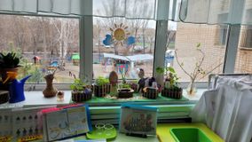 Участие в смотре-конкурсе "Лучший огород на окне" - педагоги разновозрастной группы № 3 (Белова Н.М., Демешко Н.В.)